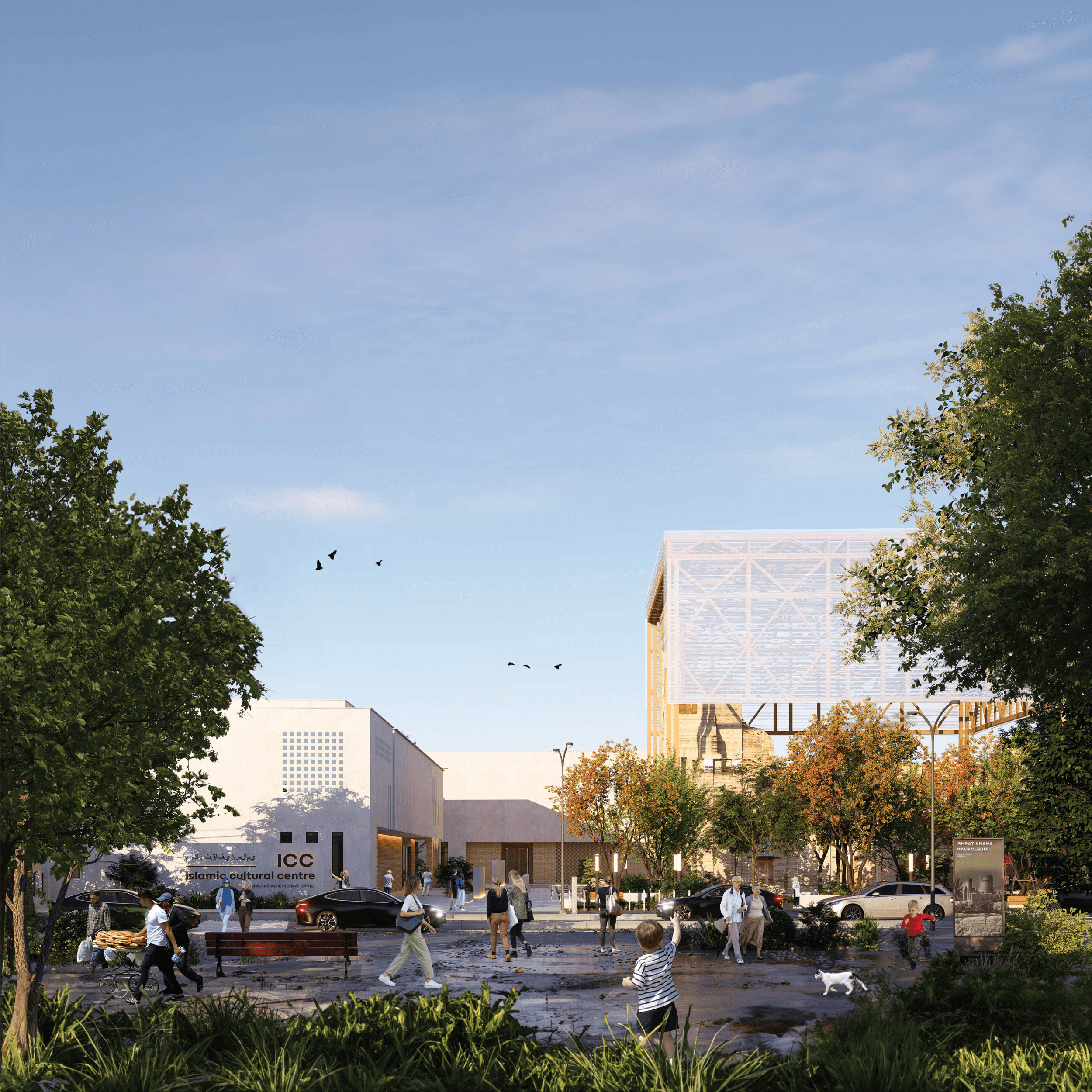 Исламский культурный центр сформирован не как вмешательство, а как продолжение многовековой истории. В исторический мавзолей не внесено никаких конструктивных изменений. Основная идея заключается в сохранении через лёгкость, что реализуется с помощью поликарбонатных кровельных покрытий и традиционных деревянных элементов.